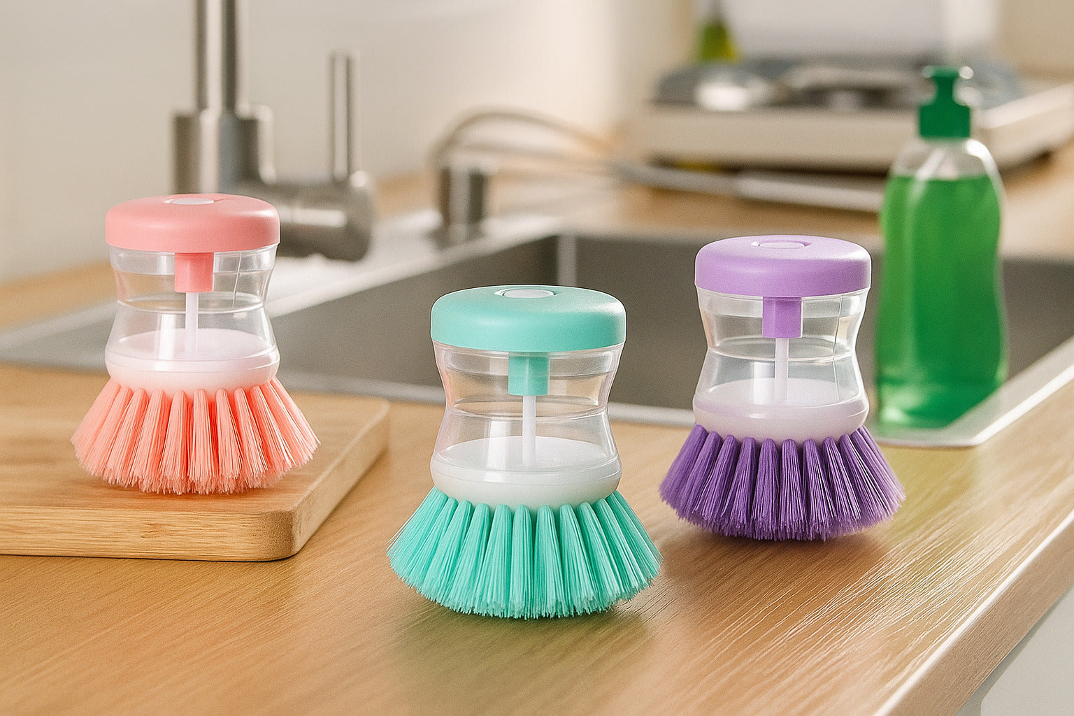 La brosse vaisselle avec réservoir est équipée de poils en nylon haute température, offrant une durabilité dans le temps et une efficacité de nettoyage optimale. Nettoyez vos ustensiles de cuisine et votre vaisselle sans endommager leur surface, pour une propreté impeccable à chaque utilisation.